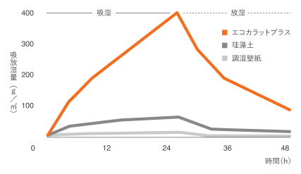 優れた吸放湿性能。調湿性がある他の建材に比べ、