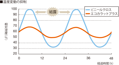 ※試験結果は当社試験によるものです。他建材、家具の配置、気象、換気などの条件によって異なります。相対湿度が40%~70%になることを保証するものではありません。