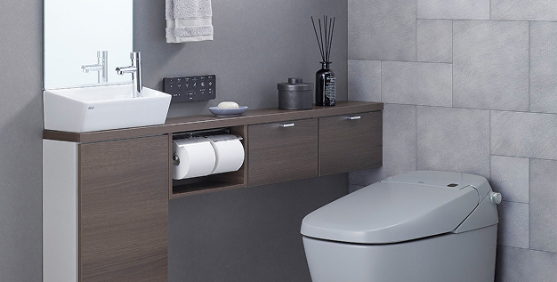 - タンクレストイレを設置するので、背面壁を飾りたい